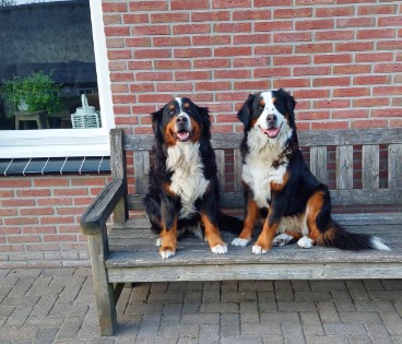 Dan hebben we nog 2 bernersennen honden. Niet zo klein dus! Op mijn ziekst was het te zwaar om ze te knuffelen. Fijn om te merken dat dat nu weer kan! Ik vind het heerlijk om buiten te zitten en dat ze dan bij me komen zitten of liggen. Ze zijn altijd blij als ik eens buiten kom. Dit motiveert ook weer om vaker naar buiten te gaan. In de toekomst hoop ik ze weer zelf te kunnen uitlaten.